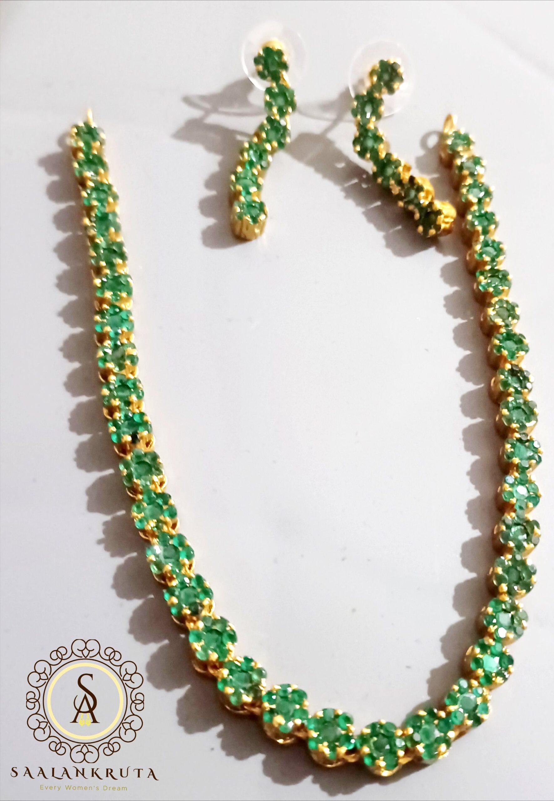 AD stones green gold plated necklace