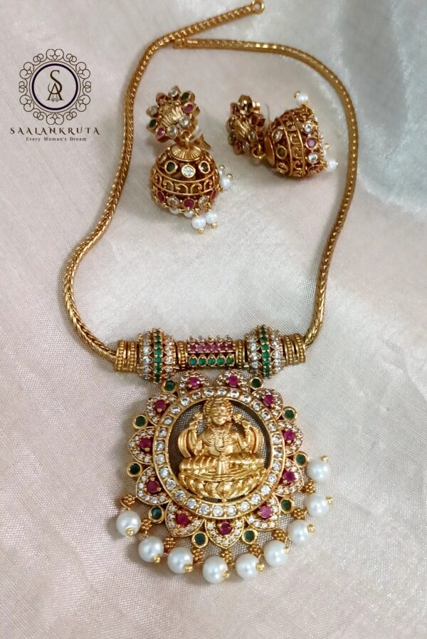 mat finishing gold platted adigae with lakshmi and jumuka is very cute simple suit to all age categories